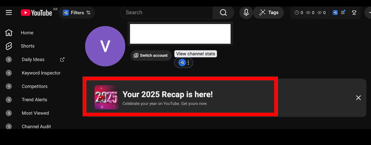 잘 연결됐다면, 유튜브 앱에서 “당신의 2025 리캡” 위와 문구가 뜨면서